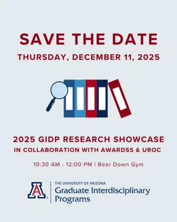 Join us for the annual GIDP Student Research Showcase, on Thursday, December 11th, 10:30 am – 12:00 pm in the Bear Down Gym! For those who have never attended one of these showcases, this is a great event that includes student research poster presentations from each of the 21 GIDP programs. SLAT has 4 amazing students who will be presenting their research posters - please come support them!